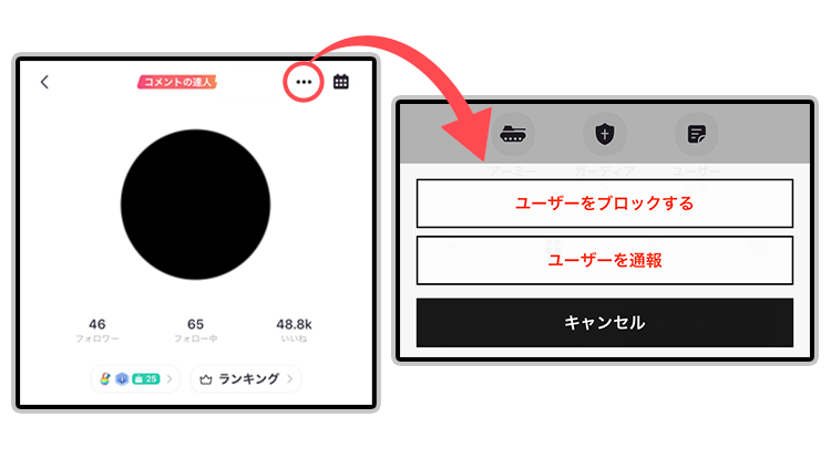2.ユーザープロフィール右上の「・・・」アイコンをタップ。
